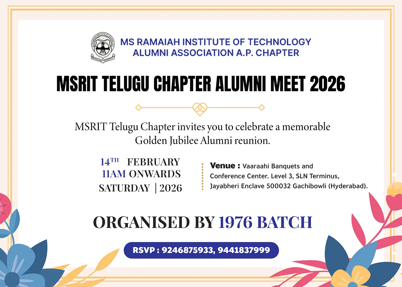 M.S.Ramaiah College of Engineering, Bangalore Established in 1962 by SRI M.S.Ramaiah., a Master, Visionary and a Trend setter. Sri M.S.Ramaiah established Engineering College, in Private Sector and ensured that all the Branches in engineering i.e. Civil, Mechanical, Electronics, Industrial, Computer, Chemical and Mechanical, are in place. Subsequently the Institution has been re-named in the year 1980 as M.S.Ramaiah Institute of Technology, which we are all aware.